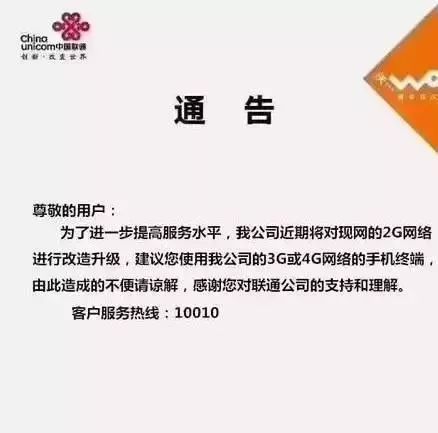 13日中國聯通確認了聯通2G將開始關閉的消息。此前,網上有消息稱,聯通公司正在進行2G基站減頻退服換機活動。中國聯通為了發展4G,開始加速退網2G,擬關停低話務基站101個。